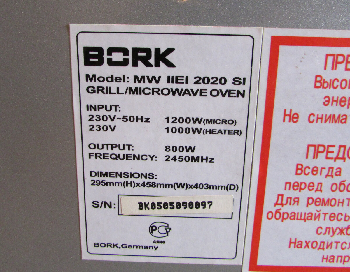 Перед вами микроволновая печь BORK MW IIEI 2020 SI. Клиент сказал, что она не греет. Проверяем работу. Ставим стакан с водой в камеру, закрываем дверку и нажимаем кнопку "СТАРТ". Время разогрева на табло идет, а вот потребляема мощность самой микроволновки, всего 182 Вт. Это нам говорит о том, что магнетрон не работает. Вода в стакане холодная. Вскрываем корпус. Самое первое, что делаем для собственной безопасности, разряжаем высоковольтный конденсатор. Не важно было на нем напряжение или нет, лучше это сделать. Далее с помощью мультиметра, измеряем сопротивление высоковольтного предохранителя. Видим обрыв. Многие сразу меняют этот предохранитель и отдают печку клиенту, но предохранители просто так не сгорают. Первое, проверяем высоковольтный конденсатор. Мультиметром на максимальном режиме измерения сопротивлений, измеряем каждый вывод к корпусу и между выводами. Сопротивление между выводами должно быть не менее 10 МОм, а к корпусу бесконечность. В нашем случае сопротивление между вы