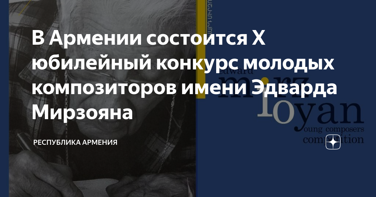 Пятнадцать молодых армянских композиторов примут участие в 10-м республиканском конкурсе молодых композиторов имени Эдуарда Мирзояна, который стартовал 10 мая. В младшей группе выступят Гагик Аветисян, Вильям Чилингарян, Арташес Мосинян, Айк Джулхакян, Армен Шахвердян, Шаварш Сиреканян, в младшей - Сюзанна Агамалян, Аракс Ащян, Арман Африкян, Арсен Гарсоян, Алекс Геворкян, Эрика Маркосян. старшая группа., Айк Мартиросян, Эдгар Мхитарян, Виктория Улиханян. Первый этап состоялся 10 мая в Ереване, в Концертном зале Союза композиторов Армении, а второй – состоится 12 мая в концертном зале Л.В. Бетховена в Дилижане. Там же 13 мая пройдет гала-концерт. В истории культурно-молодежных конкурсов это уникальный случай, когда проект реализуется сразу в двух городах. Юные композиторы остановятся в Дилижанском доме творчества композиторов имени Эдварда Мирзояна, что будет способствовать созданию праздничной атмосферы, а также создаст прекрасную возможность провести вместе несколько дней в сооружен