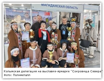 Делегация Магаданской области успешно представила регион на Международной выставке-ярмарке "Сокровища Севера-2023 — Мастера и художники России". Мероприятие проходило в Москве, в экспоцентре ВДНХ. На главной выставочной площадке страны свое национальное мастерство демонстрировали умельцы — представители северных народов из 25 регионов России. От Магаданской области участвовали косторезы, мастерицы декоративно прикладного творчества и национальный ансамбль "Нэлкени" из поселка Ола, всего 15 человек. "Мы решили, что кроме работ делегатов возьмем с собой изделия наших старейшин. Им сложно участвовать в дальних поездках, но действительно есть, что показать. Чего только стоят национальные костюмы от наших опытных искусниц", — рассказала председатель Магаданской областной Ассоциации коренных малочисленных народов и этнических групп Севера Лилия Щербакова. Расходы, связанные с оплатой перелета и проживания артистов ансамбля "Нэлкени" из посёлка Ола, взял на себя "Полиметалл". Сохранение самоб