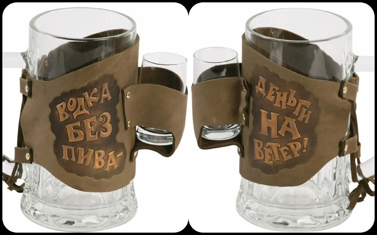 Даже у такого простого сочетания как водка с пивом, есть своя, и довольно интересная, история, о которой я вам и хочу сегодня рассказать. В нашей компании друзей (я имею ввиду мужиков) водка никогда не обходится без пива. Не знаю почему, но среди подходов к рюмкам мы можем неторопливо потягивать пивасик. Ёрш это или нет, когда пьешь два напитка по отдельности, не знаю. Но с уверенностью скажу, что у нас точно водка без пива - деньги на ветер. Думаю, что смешивать водку с пивом начали ровно тогда же, когда появилась водка с пивом. Но есть две версии появления этого забористого сочетания, которые я вам и поведаю. А потом разберемся, почему это сочетание такое "убийственное". А сама тема публикации навеяна вот этим пивным стаканом в кожаном чехле с рюмкой на перевес (фото с двух сторон). На всякий случай ссылку на него оставлю тута. Кто и как придумал смешивать водку с пивом. История Ерша Первая версия гласит, что в 19-м веке, в самый рассвет питейных заведений была специальная ёмкость,