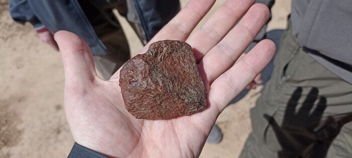 В этот же день съездили в краеведческий музей в соседний городок Ленинск. Особо ничего из рассказов экскурсовода не заинтересовало. Вечером ужин, шахматы, чаи. После стали обсуждать кому, что непонятно из главы “Храм Луны и его роль в приобретении удачливости Сталиным”. Вышли на обсуждение религий, в частности ислама. Запомнилась такая идея, что 5-кратная молитва, которая всегда совершается лицом к Каабе, в какой части света ты бы не находился, своей целью преследует напоминание каждому мусульманину о главном, что он должен совершить в своей жизни - побывать у Каабы и совершить обряд, и при этом задуматься о смысле этого обряда, откуда он берет свое начало. 6 мая решили напоследок еще раз попытать счастья в полях. Погода была уже не такая как в первые дни. Дул холодный ветер и было пасмурно. Первым рейсом Хомяк закинул в поля Невмываку, Нуржанова и Пещенко, ну а после уже остальных Рындина, Манташяна и меня. Когда мы приехали, мужики сказали, что нашли метеорит. Мы сразу проверили его на магнитность - точно он. По цвету такой же как у метеоритчиков, сигнал металлоискателя дает тот же звук, что и на другие метеориты, которые нам давали для калибровки. Нашел его Невмывака, но особой радости по этому поводу он не выражал. Мужики тоже были спокойны, как будто каждый день находят такие вещи. Перед тем как приехать на место, каждый из нас считал, что ничего мы сегодня точно не найдем, было даже какое-то безразличие. Все как будто ехали просто отстреляться в последний день. Спустя 10 минут Невмывака ушедший в поля вернулся с новым куском, но уже покрупнее и красивее. Тот же красноватый цвет, магнититься, звук прибора характерный. Спросили его о состоянии перед находкой. Он сказал, что сначала он в достаточной степени промерз на ветру, потом насмотрелся на пасущихся вдали лошадей, вроде даже понаблюдал за ними в монокуляр и пошел в противоположную от них сторону. Также он сделал себе комфортную длину рукоятки металлоискателя, чтобы было удобно им работать, наметил план, куда он хочет дойти и пошел. По ходу дела вспоминал советы метеоритчика Евгения. Да, и еще один важный момент - в последний день мы все решили отказаться от так называемого бухгалтерского подхода поиска, при котором контролируется каждый метр, все строго двигаются в одном направлении и всем при этом невероятно скучно. В этот раз решили двигаться в хаотичном порядке, куда душа пожелает и при таком подходе процесс пошел. Спустя минут 15-20, Манташян нашел еще один кусок и так получилось, что меньше чем за час мы нашли 3 кусочка. После этого находок больше не было и мы вернулись восвояси.