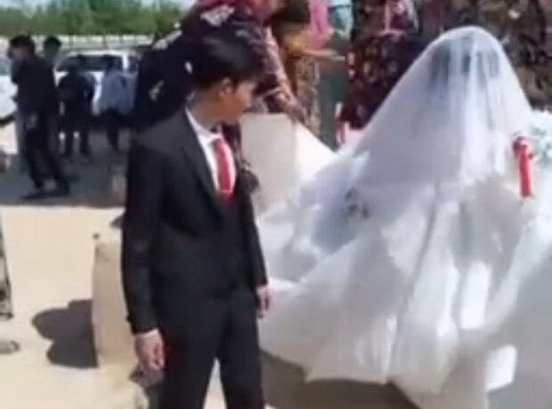 На видео можно увидеть, как проходит свадьба двух довольно молодых людей. Пользователи социальных сетей в молодоженах разглядели детей, а не взрослых людей.