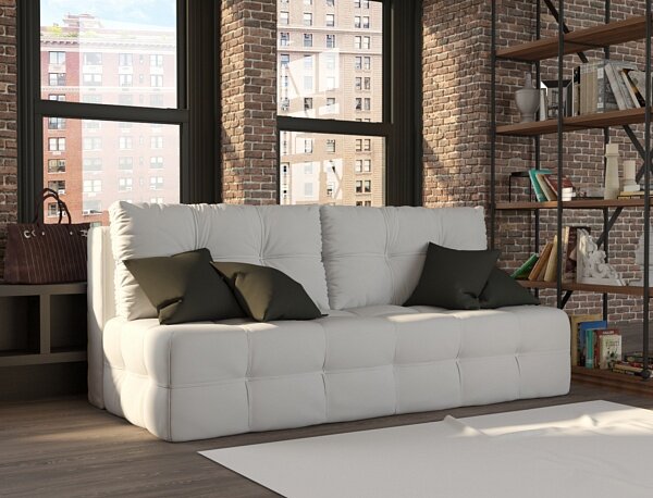 Диван Lids в современном стиле и актуальном белом цвете от бренда «Klukva» украсит небольшую гостиную или детскую. Отсутствие подлокотников делает его не только интересным, но и компактным.