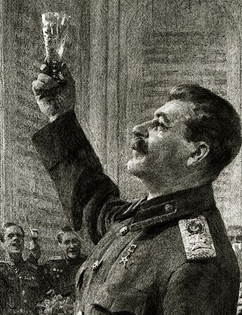 Когда часы пробили полночь, все глаза за столом скрестились на Сталине, который поднял бокал с красным вином.