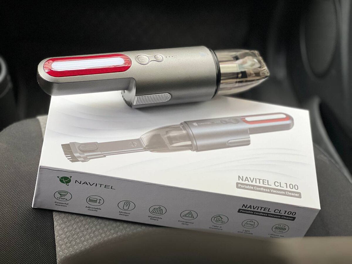 Здравствуйте! Сегодня я хочу рассказать вам о беспроводном автомобильном пылесосе с аварийным фонарём NAVITEL CL100. У меня большой водительский стаж и за его время у меня было три автомобильных пылесоса, но все они были проводными и работали исключительно от прикуривателя. Ни один из них я не покупал самостоятельно, это были подарки. Скажу сразу, что ни один из них я не оценил, поскольку от пылесоса в них было одно название. «Тянули» они слабо, а большая часть мусора статически притягивалась к стенкам пылесоса и отлична была видна через прозрачные участки корпуса. Забивая пылесос наполовину мусором и не получая при этом чистого ковролина автомобиля, я всегда отправлялся на мойку и уже там обычным пылесосом мне вычищали салон. Свои автомобили я не сильно загрязнял, а основной проблемой в процессе уборки был мусор, который цеплялся за ковролин и автомобильный пылесос с ним просто не справлялся. Сейчас, когда мне в руки попал пылесос NAVITEL CL100 я был уверен, что результат будет аналог