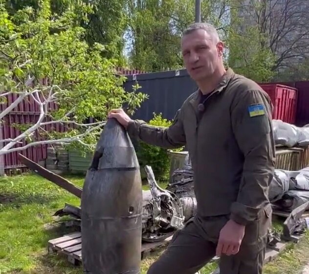 Мэр Киева у обычной бомбы снял видео, в котором сказал, что ПВО Украины сумела сбить Кинжал
