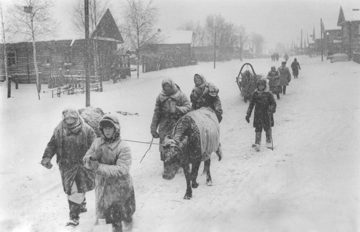 За мной и Рафаилом закрепили двух бычков: мы должны были научить их ходить под хомутом. До войны колхоз понятия не имел о деревянных хомутах для бычков: в качестве тягловой силы хватало лошадей. Но тут помог мастеровой дядя Дмитрий, бывший заводской слесарь. Как он оказался в деревне, сказать трудно, но он быстро стал здесь своим, а вскоре обзавелся и семьей. Он-то и смастерил из ольхи спаренные хомуты для бычков. На плуг четыре бычка, пара впереди, пара сзади; мы с другом погоняем, зорко следя, чтобы правые бычки шли по борозде. Плугарем был парнишка года на два старше нас или женщина. Как пришла пора сенокоса – косили сено (от запахов разнотравья даже голова кружилась), подвозили сено к стогам, скирдовали… В жатву на тех же бычках возили снопы на ток.