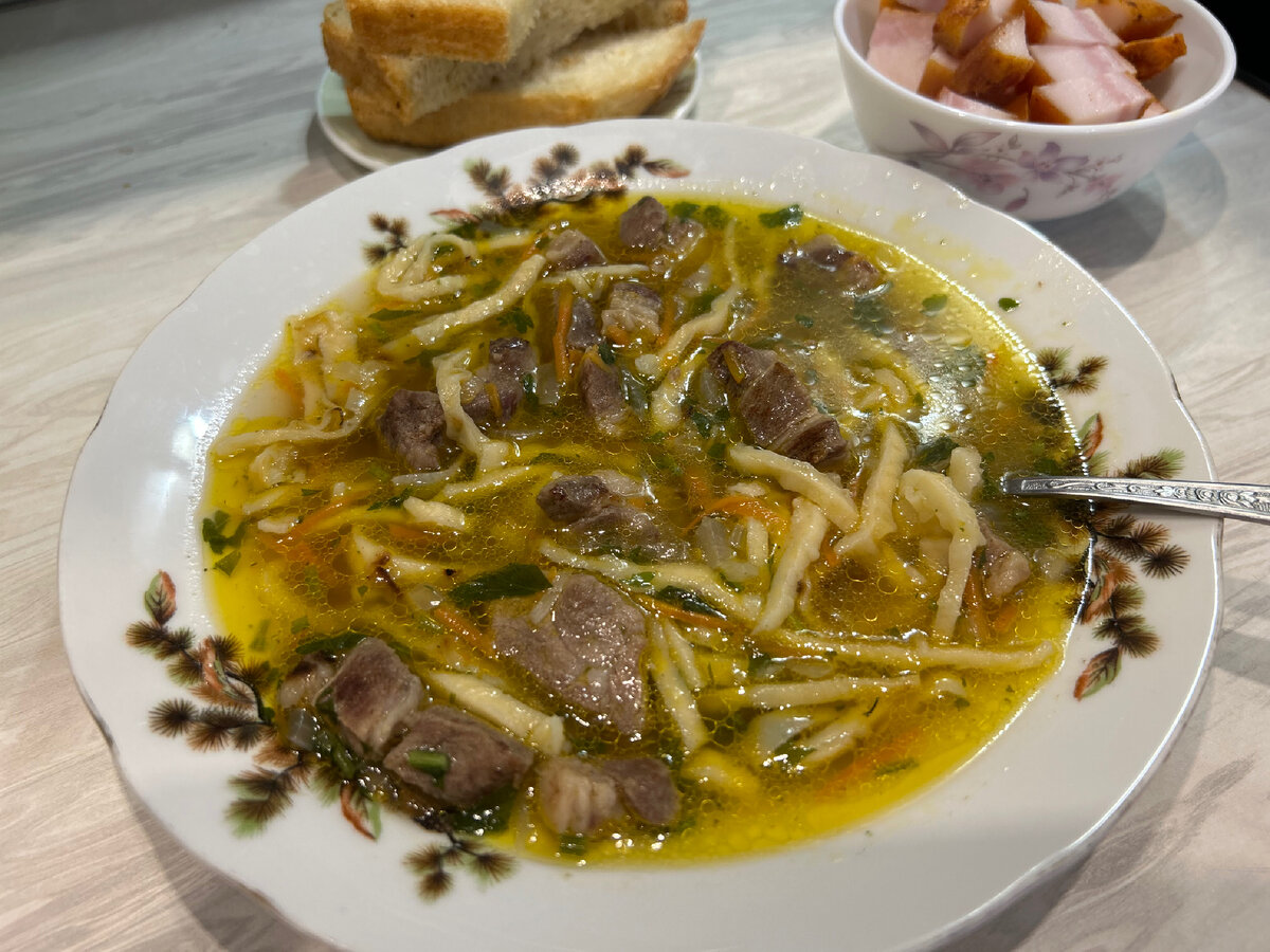 Всегда готовлю супы на обед, но этот один из моих любимчиков! Отличный суп, на мой взгляд простой и очень вкусный. В моей семье его едят все и дети, и взрослые. А чего не есть то? Обалденный суп 👌! Он настолько прост и вкусен, что готовлю его часто и главное быстро. Подписывайтесь ✍️ на мой канал! Я каждый день готовлю для своих родных и показываю, рассказываю, что мы едим. Возможно и вы, что-то найдете для себя нового и интересного, как на праздничные посиделки, так и на каждый день или вечер! Рецепт приготовления⏬⏬⏬: 🔹 Беру мясо, у меня свинина - 300 грамм, можно любое, курица, говядина, баранина. Нарезаю на мелкие кусочки и обжариваю в казане на подсолнечном масле, до готовности, 20 минут. Чем мельче нарежете, тем меньше времени на жарку мясо. 🔹Затем добавляю половину репчатого лука, нарезаю мелко и добавляю половина средней моркови, тёртую на тёрке по корейски. 🔹 Обжариваю всё до мягкости и золотистости примерно, ещё 10 минут. 🔹 Добавляю 1.5 литра воды. Даю закипеть. 🔹 Затем