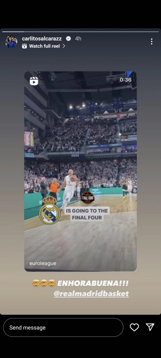Карлос Алькарас поздравил баскетбольную команду «Реала» с выходом в финал Евролиги