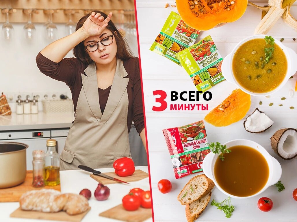 ПРИГЛАШАЕМ ВАС НА TianDe-КУХНЮ! В "меню" - два продукта - супы со сбалансированным составом, БЕЗ ГМО, красителей, консервантов и глютена. Помимо преимущества в быстром приготовлении (3мин) у этих блюд всего лишь по 78 ккал на одну порцию и низкая цена - любой за 116₽! ▪️ТОМАТНЫЙ СУП С КОКОСОМ 🥥 Это пикантное сочетание томата и кокоса + топинамбур, морковь, картофель. Мало того, что такой суп не даст вам поправиться, он ещё и поможет в поддержании стройной фигуры, отразится положительно на работе сердечно-сосудистой системы, будет способствовать очищению организма от токсинов. ▪️БАНАНОВЫЙ КРЕМ-СУП С ОВОЩАМИ 🍌 Экзотическое блюдо. В нём только самые полезные и натуральные компоненты для пользы вашего организма. Мука зелёных бананов, тыква, картофельные хлопья, лецитин, щепотка специй и овощей. Этот сбалансированный состав очень полезен для печени, микрофлоры кишечника и снижения веса. Вы все ещё стоите у плиты? Тогда идите к нам! Наши супы готовятся быстро, при этом, не уступают в