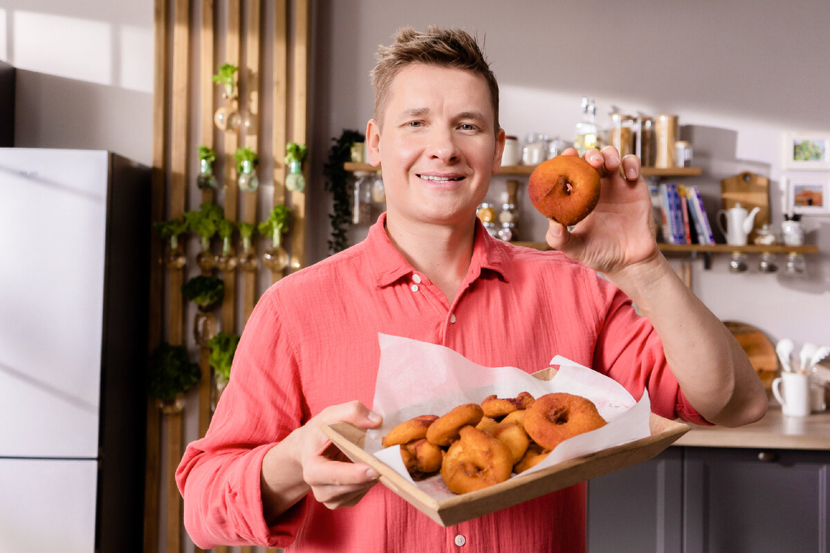Ингредиенты Яблоки 4 шт. Мука 140 г Сливочное масло 50 г Яйца 4 шт. Сахар 60 г Разрыхлитель 5 г Подсолнечное масло для фритюра 700 мл Каркаде чай листовой 10 г Вам понадобится нож для удаления сердцевины из яблок и большие шпажки Приготовление 1. Отправить в миску мягкое сливочное масло, всыпать сахар и перемешать до однородности венчиком. 2. В масло вмешать поэтапно 4 яйца, постоянно перемешивая венчиком. Совет от шефа: «Важно вмешивать яйца по одному, чтобы тесто получилось однородное». 3. Муку смешать с разрыхлителем и щепоткой соли. 4. Влить жидкие ингредиенты к сухим, постоянно перемешивая венчиком. 5. Яблоки очистить от кожицы, отрезать попки и с помощью специального ножа удалить сердцевины. Яблоки нарезать кольцами средней толщины около 0,5 см. 6. Разогреть подсолнечное масло для фритюра. 7. С помощью шпажки опустить яблочные ломтики в тесто и отправить во фритюр, обжарить с двух сторон до золотистого цвета, периодически убирая с нагрева, чтобы не пережарить пончики. 8.