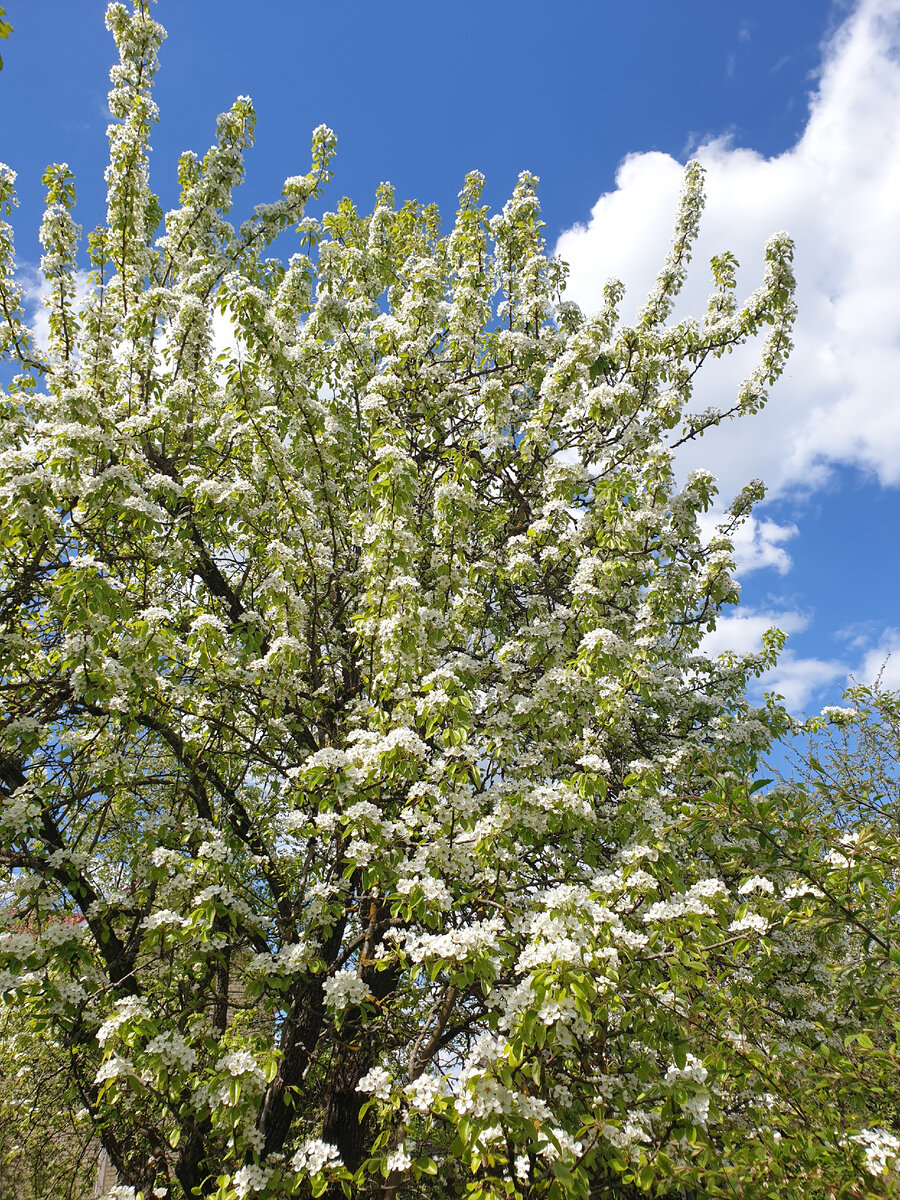 Зацвела груша на даче. Кажется нет места от белых цветов.