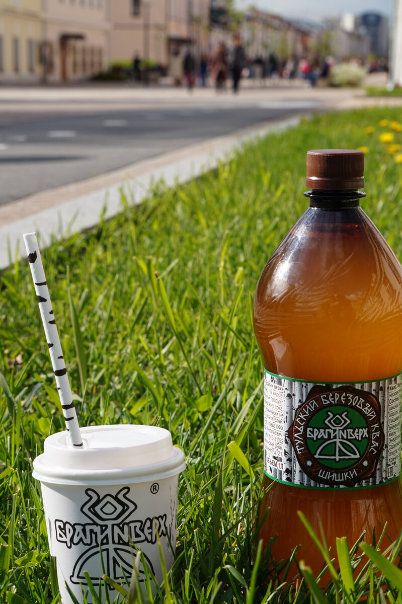 Гуляя по Тульскому Кремлю уже на выходе наткнулась на домик с интересными напитками! Там продавали сбитень на березовом соке и несколько видов кваса из березового сока с разными настоями. Разговорилась с мужчиной, который стоял за стойкой и оказалось, что этот березовый квас их семья делает под Тулой уже 20 лет, а изготавливать и продавать массово продукт они начали 8 лет назад в Ясной поляне. Там и около тульского Кремля они и продают свой натуральный продукт, сделанный семьей по старинным русским традициям. Бренд называется «Брагин верх» и историю об этом продукте можно посмотреть в выпуске о производстве, тонкостях изготовления, сложностях и развитии. Этот квас стоит попробовать потому что это абсолютно натуральный продукт. Березовый сок не пастеризуется и не кипятиться плюс настои из сосновых шишек, крапивы, хрена, рябины, имбиря и изюма также натуральные. Всё, кроме имбиря, собрано в тульской области. Стоит 1 литр кваса 300 р., что не дешево, но и труда здесь вложено столько, чт