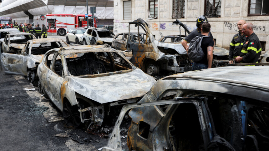 В результате ЧП пострадал один человек. Фото: REUTERS / Claudia Greco Итальянская полиция озвучила причину, из-за которой в Милане днем 11 мая прогремел взрыв. Агентство AGI со ссылкой на данные правоохранительных органов заявило, что инцидент произошел в результате разрыва баллонов с кислородом. Уточняется, что пожар был спровоцирован взрывом баллонов, которые располагались внутри припаркованного фургона на улице в районе Порта Романа. Огонь моментально перекинулся на стоящие рядом автомобили. Повреждены пять машин, на данный момент они потушены. Агентство также сообщило, что в результате инцидента пострадал один человек — водитель автофургона. Мужчина получил ожоги. По его словам, возгорание началось в моторном отсеке, а после перекинулась на баллоны с кислородом. Он пытался ликвидировать огонь самостоятельно, когда прогремел взрыв. Итальянские СМИ ранее сообщили о мощном взрыве в центре Милана. По их данным, сотрудники спецслужб успели эвакуировать всех сотрудников и учеников местно