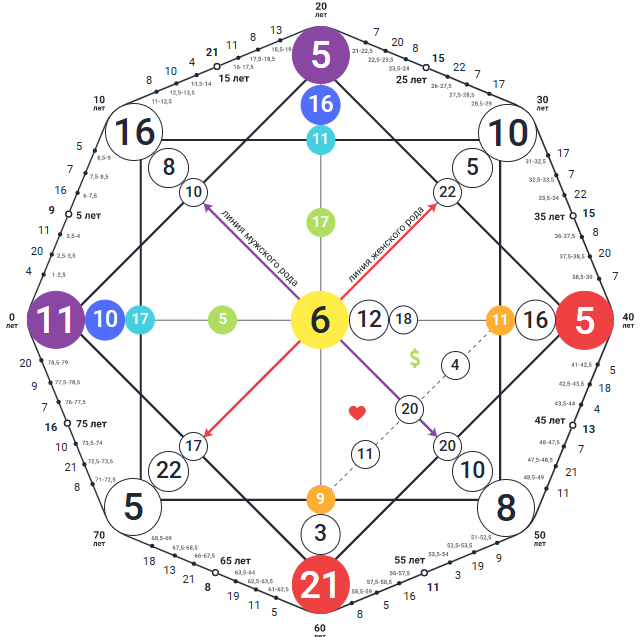 Это энергия потока и удачи, но род избрал другой путь. Тяжелая жизнь, изматывающий физический труд, нежелание слышать свой внутренний голос. Программа активизируется в 30 лет.