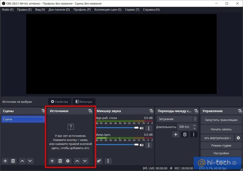 Интерфейс платформы может показаться сложным, но сделать скринкаст с экрана здесь довольно легко. Сначала нужно добавить источник: