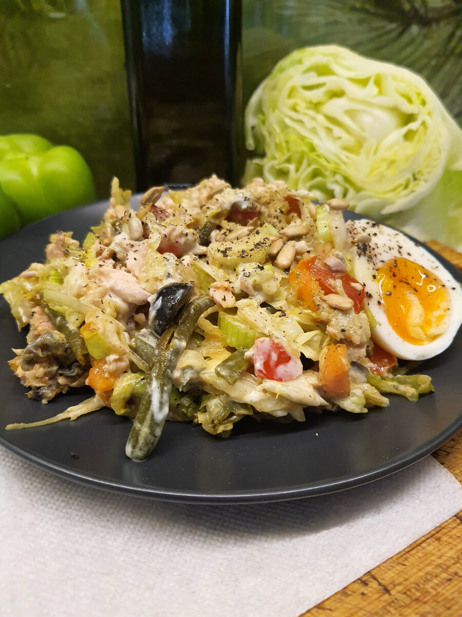 Чем ближе к лету, тем более "сезонным" становится меню - и это дает отличную возможность не только набраться каких-то ценных нутриентов, но и значительно разнообразить привычное меню, причем сделать это за счет "полезных" продуктов. Открытие сезона клубники или черешни может порадовать человека не меньше, чем только что привезенная пицца, а обилие свежей зелени в тарелке способно дать 50 очков вперед к фотогеничности любого блюда - и этим следует пользоваться. Одна из ключевых идей этого блога состоит в том, чтобы понять, к каким хитростям прибегают производители промышленных полуфабрикатов и воссоздать их из здоровых, натуральных и даже низкокалорийных ингредиентов. Другая же заключается в том, что внешняя эстетика тарелки способна помочь полюбить полезное, живое и сочное; превращая сам процесс готовки в приятное творческое занятие. Без муки, сахара, круп и прочих промышленных полуфабрикатов. Авторство фото и блюд принадлежит скромному автору этого блога. 1. Салат Нисуаз с форелью