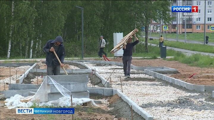 В Великом Новгороде продолжается благоустройство территорий, победивших в голосовании