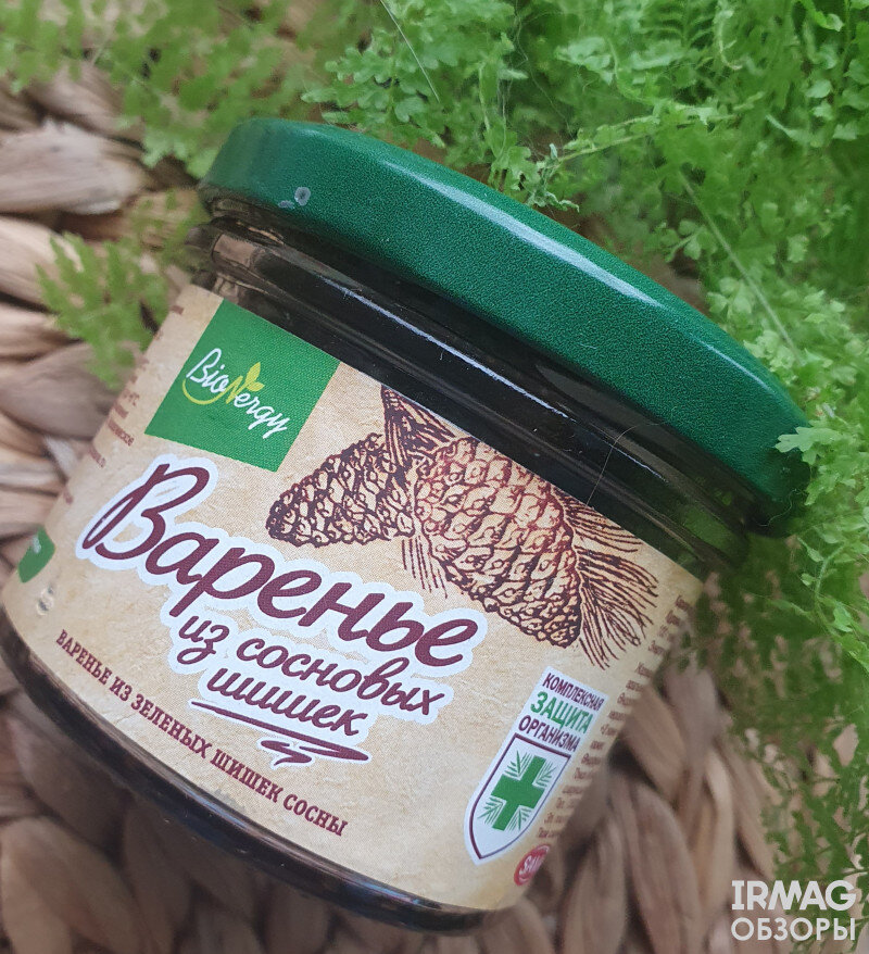 Сибирская экзотика. Авторский рецепт "таёжного чая" тут. Добрый день! Хочу вас познакомить с отличным по составу и хорошим по наполнению эко-варенью из сосновых шишек от Томского бренда "САВА" - ТМ «BioNergy». Приобрести это варенье можно в интернет-магазине "Ирмаг" по весьма привлекательной цене 217 р. Благодаря прозрачным стеночкам можно с лёгкостью посмотреть наполнение. А именно сколько шишек находится внутри. И поверьте мне, варенье из сосновых шишек именно этого бренда заслуживает особого внимания по наполнению и по составу. Данный бренд наполняет баночку сосновыми шишечками под завязку. Отличное соотношение сиропа и шишек. На боковой стеночке стеклянной банки по всему периметру наклеена иформационная этикетка под эко-стиль. Дизайн этикетки очень красивый. На ней представлена достаточно интересная и полезная информация для нас, потребителей. Это варенье изготовлено из зелёных шишек сосны. СОСТАВ Шишка сосновая, сахар Состав отличный, оно изготовлено из 100% натуральных ингредиен