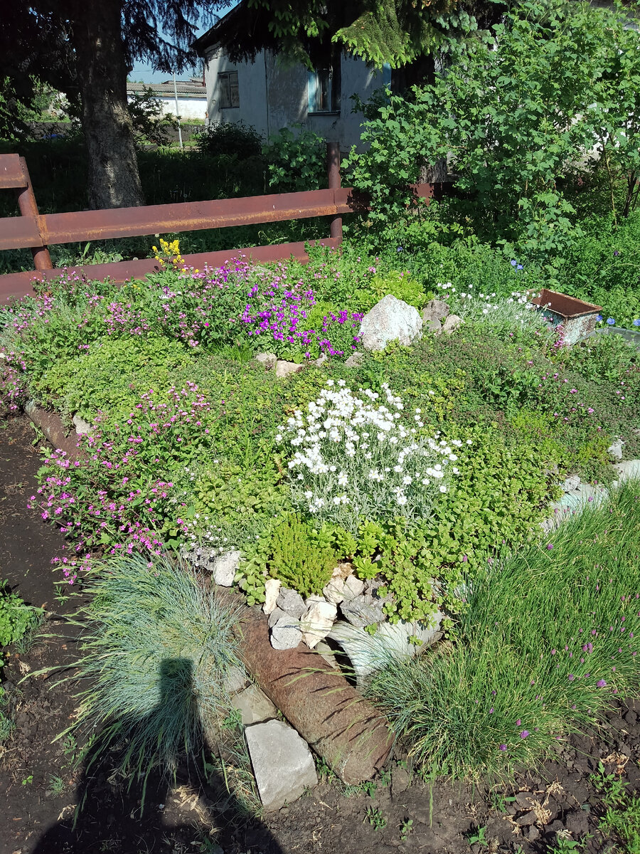 Горка набирает обороты. Доброго дня дорогие мои! Вчера весь день моросил дождик и я успела соскучиться по саду. Пойдёмте вместе со мной, прогуляемся. Успеть снять лён, к обеду всё лепестки облетят. Мыльнянка начинает своё цветение, скоро вся горка будет розовая. У дороги цветут васильки и водосбор. Гипсофила белая скоро превратится в белый шарик. Солнце такое яркое, что не знаешь с какой стороны подойти, что бы увидеть всю эту красоту. Начинает цвести герань от Тины, сорта не знаю, но она мне нравится. А эта гипсофила розовая, на горке, тяжело поймать цвет на солнце. Шарики из мыльнянки. Обриетта продолжает цветение. Ясколка почти в полной красе. А это горка с другой стороны. Анютки радуют. Флокс на солнце выглядит более бледным, чем на вечерних фото. Ну и конечно сейчас пора цветения аквилегий. Мой полутеневой уголок. Зацвела белая лапчатка. Куст дерена стал совсем белым. Продолжают цвести примулы от Светы, они такие яркие. Начинает своё цветение шалфей дубравный