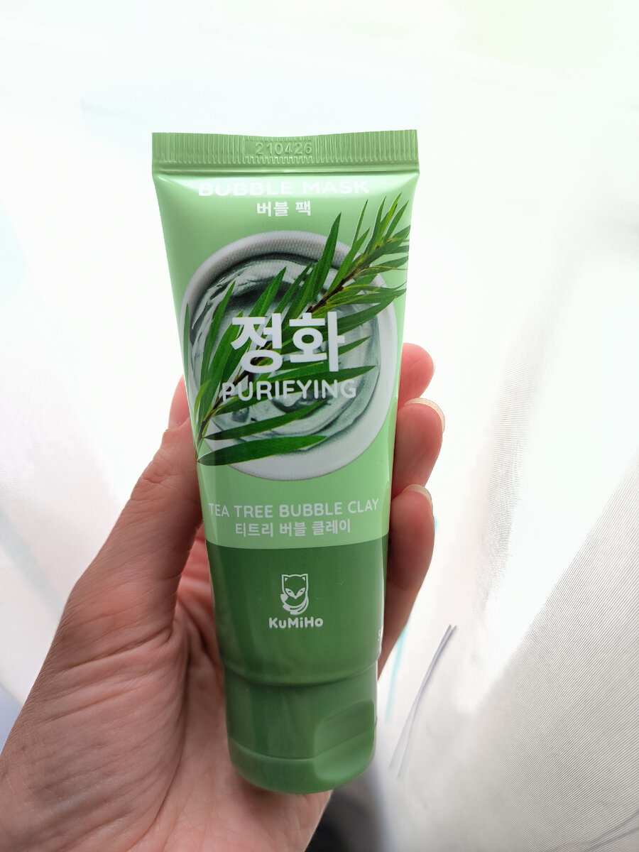 Привет! А я сегодня попробовала новую маску для лица и захотела поделиться этой удачной находкой из "Магнит Косметик" Пузырьковая маска BUBBLE MASK PURIFYING корейского бренда KuMiHo с глиной и маслом чайного дерева Предназначена для глубокого очищения и удаления чёрных точек. Масло чайного дерева увлажняет, успокаивает, выравнивает кожу, стимулирует обновление клеток. Глина контролирует выделение кожного себума*, сужает поры, улучшает цвет лица. *Себум - жирное вещество, выделяемое сальными железами кожи. Обладает водоотталкивающими свойствами, смазывает кожу и волосы. Способ применения Быстро нанесите маску толстым слоем на лицо, избегая волосистой части головы (и бровей), участка вокруг губ и кожи под глазами. Текстура этого косметического средства немного вязкая, плотная, но при взаимодействии с воздухом мгновенно начинает пузыриться, становится белой и немного щекочет лицо. Для процедуры достаточно 15-20 минут, но я держала BUBBLE MASK немного дольше, и реакция "шипения