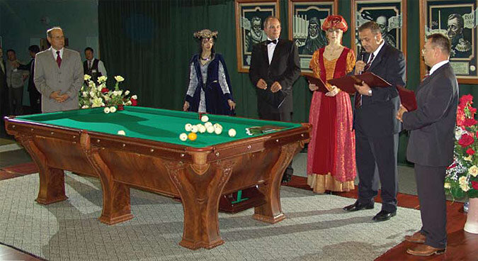 Бильярд "Монарх" изготовлен в 1896 году фирмой "Brunswiсk". Восстановлен специалистами компании "РуптуР" в 2004 году.
