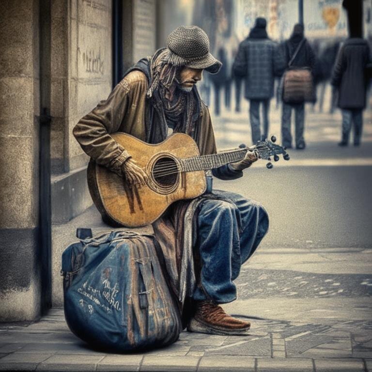 Он всегда стоял на том же углу, играя на своей гитаре и поющий свои песни. Его голос был прекрасен, и его мелодии заставляли людей остановиться и слушать. Он был известен в городе как "Уличный бард", и его музыка была частью жизни многих людей.