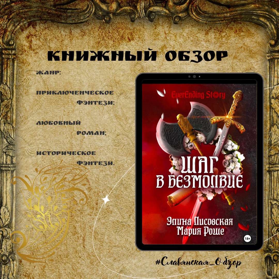 "Шаг в Безмолвие" Автор: Элина Лисовская, Мария Роше Ценз: 18 + Объём: 410 стр. Офигенно, хочу ещё! — редко какая книга вызывает у меня подобную реакцию. Но эта история покорила. Хотя поначалу зацепила именно обложка. Я постоянно ведусь на подобное, вижу что-то цепляющее, в данном случае оружие, и, как сорока, хватаю. Беру, если приглянулось внешнее оформление и соответствующий моим предпочтениям жанр. В итоге, звёзды сошлись. Попадание в свою целевую аудиторию стопроцентное. Мне понравилось всё: проработанный мир, герои и их характеры, развитие любовной линии, стиль написания, динамичность сцен. Я прямо-таки получила огромное удовольствие. Книга написана на высоком уровне. А такое я говорю нечасто, будучи придирчивым читателем. Я очень трепетно отношусь к месту на книжной полке, но в данном случае с удовольствием поставила бы в рядок с остальными ценными душе книгами и когда-нибудь ещё перечитала. Сюжет Сначала читателям показывают сцены из разряда: "Уже 3 часа ночи, а мы не б