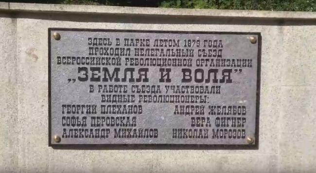 В Центральный парк вернули мемориал, который посвящен съезду революционной организации «Земля и воля» в 1879 году. В нем участвовали такие исторические личности, как Георгий Плеханов, Софья Перовская, Александр Михайлов, Андрей Желябов, Вера Фигнер, Николай Морозов. Об этом рассказали в сообществе «Защита культурного наследия Воронежа». Мемориальная доска появилась в Центральном парке в 1983 году. Ее автором выступил скульптор Александр Кожевников. В 2015 году мемориал пропал во время реконструкции парка. Чиновники обещали вернуть её на место по завершении работ в парке, но она была утрачена.