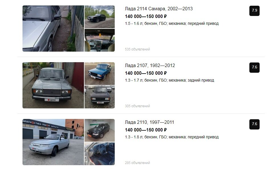 Выбор на любой вкус, хочешь Семёрку или Четырнадцатую 10-12 лет, а хочешь Mercedes 33 лет.