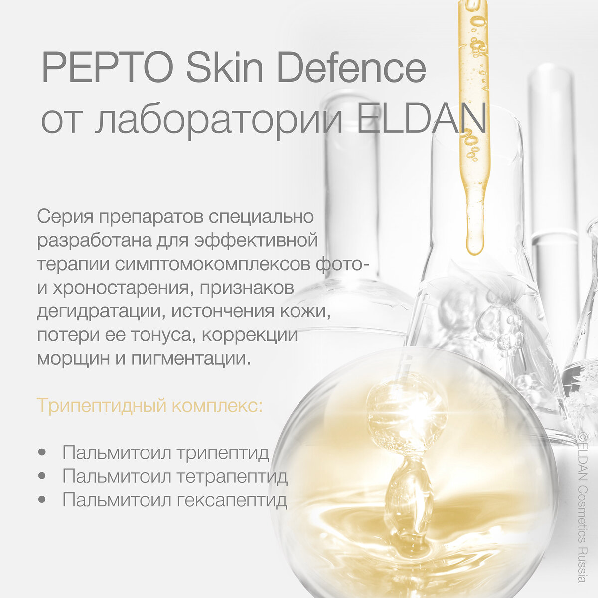 🧫Омолаживающее действие пептидов, полученных благодаря современным биотехнологиям, направлено на коррекцию функциональных возрастных изменений кожи. Благодаря небольшому размеру, пептиды быстро проникают в кожу, активируют процессы регенерации, стимулируют синтез коллагеновых волокон, обезвреживают свободные радикалы, обеспечивают противовоспалительный и иммуномоделирующий эффекты. 🧬Серия препаратов «PEPTO Skin Defence» специально разработана для эффективной терапии симптомокомплексов фото- и хроностарения, признаков дегидратации, истончения кожи, потери ее тонуса, коррекции морщин и пигментации. Линия представлена шестью препаратами, сыворотки и кремы разделены по возрастному признаку: • пептидный тоник • пептидные сыворотки 40+ и 50+ • пептидные кремы 40+ и 50+ • пептидная маска из профессионального ухода (ELS/S-168) 🧪В состав каждого препарата входит уникальный трипептидный комплекс: • Пальмитоил трипептид – 1 для активации производства коллагена и гликозаминогликанов, восстана