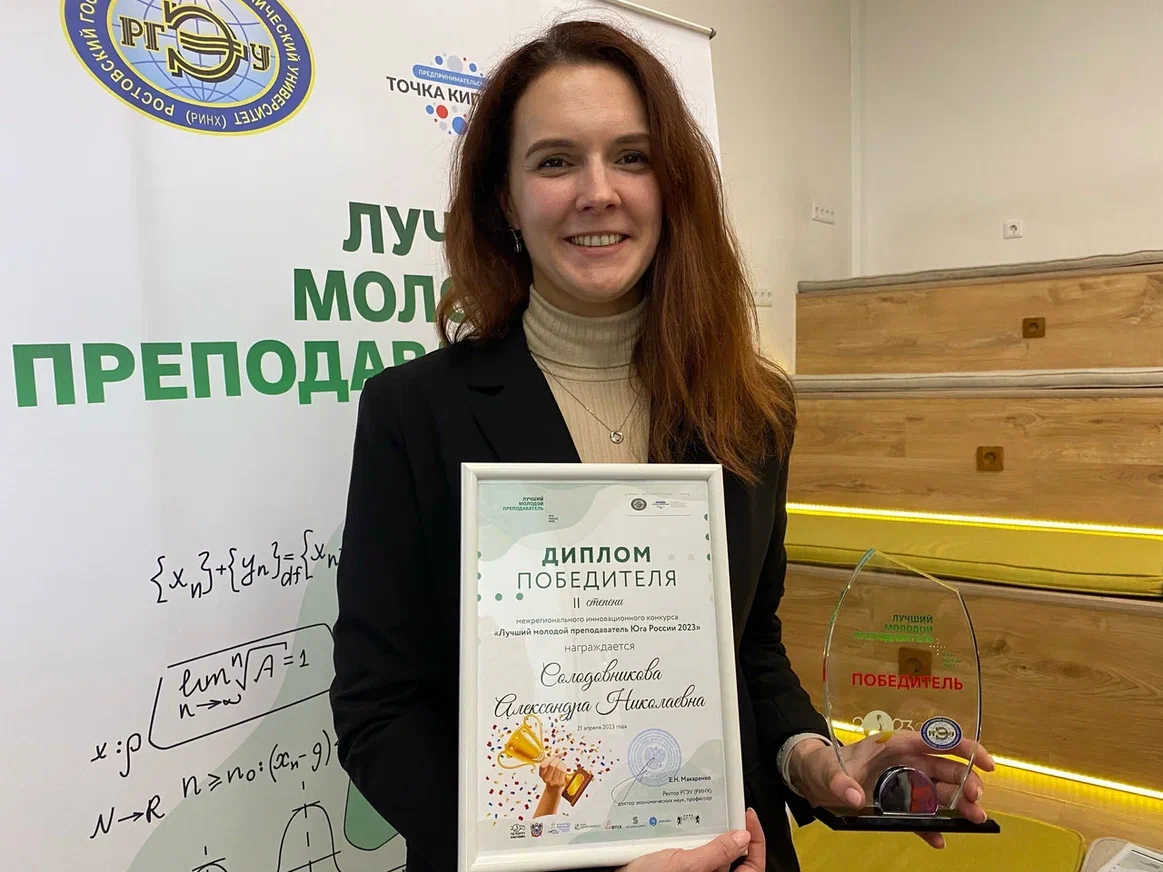 21 апреля она представляла Южный федеральный университет в заключительном этапе конкурса преподавателей Юга России и вошла в тройку победителей из 32 финалистов, представлявших 8 регионов нашей страны.