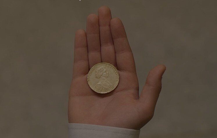 Краем уха слышу, что по телевизору сериал идет. И там вдруг громко сказали слово "нумизмат". - Ну-ка, ну-ка! Посмотрел серию. Суть в том, что один страховой агент потерял монету от "нумизмата", которую ему нужно было застраховать. Конечно, очень удивил факт передачи монеты страховому агенту (монету лапал каждый первый). И это была непростая монета, а ... золотая монета номиналом 50 рублей с изображением портрета Петра I. Про портрет они ничего не говорили, но Петра Алексеевича легко можно узнать. И еще такая информация - монета оценена в 5000 евро. За весь фильм показали только одну сторону монеты. По сюжету сериала данная монета была спущена в автомат с чипсами не самым умным ребенком. Теперь интересует ответ на вопрос - "Что это за была монета номиналом 50 рублей?". Сериал называется "Саша-Таня". Подозреваю, что создатели сериала просто взяли наугад: - А пусть будет золотая. - А пусть будет номиналом 50 рублей. - А пусть стоит 5 тысяч евро. Если бы такая монета действи