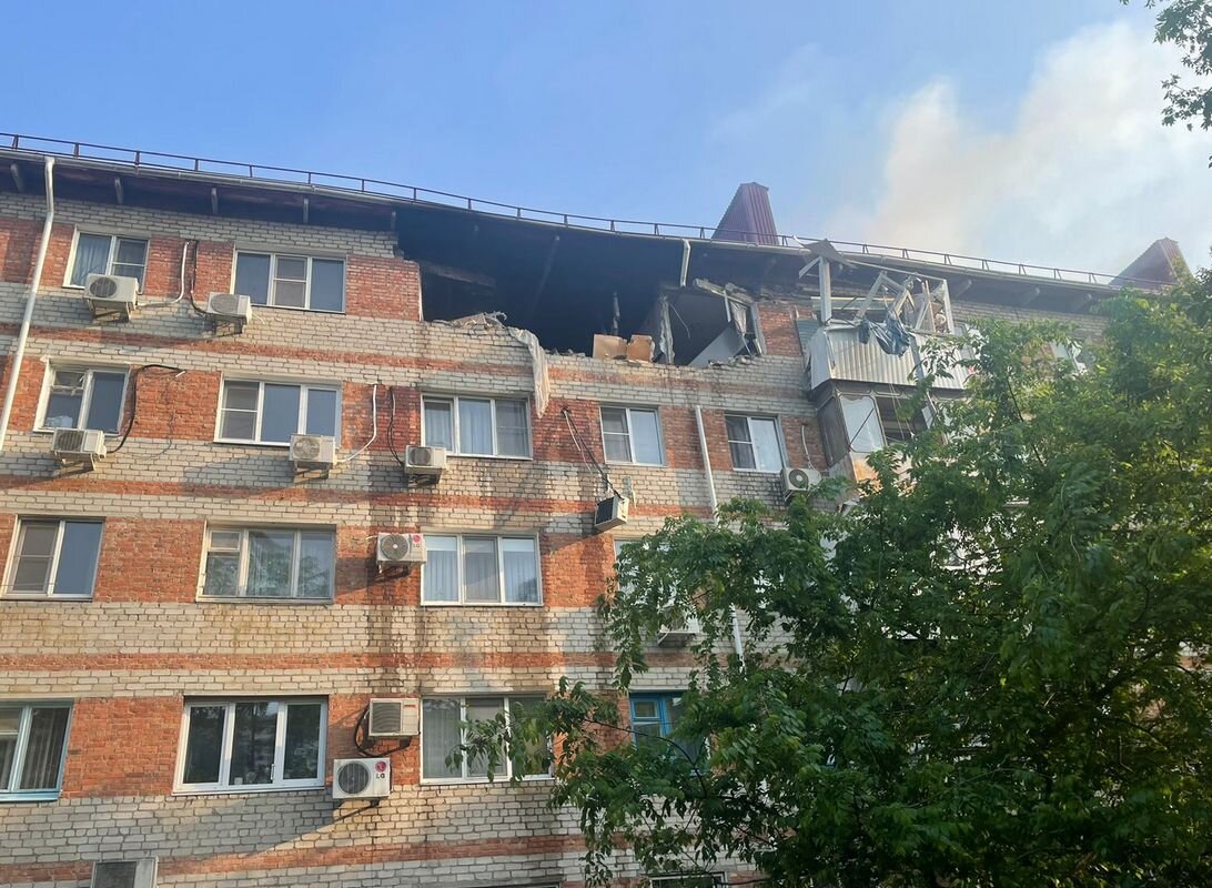 На улице Клинической в Краснодаре произошёл взрыв бытового газа, после чего начался пожар. Власти региона показали снимки с последствиями происшествия. На фотографиях, опубликованных министерством по ГО и ЧС Краснодарского края, можно увидеть, что взрыв разрушил часть стены квартиры на пятом этаже, а также повредил фасад дома, расположенный рядом балкон и окна в подъезде. По последним данным, хозяйка жилища попала в больницу с ожогами. Её состояние оценивается как средней степени тяжести. Обошлось без погибших. На месте происшествия продолжают работать экстренные службы. Как писал A42.RU, в пятиэтажке в Краснодаре произошёл взрыв газа. К ликвидации возникшего после этого пожара привлекли более 120 человек. Фото: пресс-служба Министерства ГО и ЧС Краснодарского края