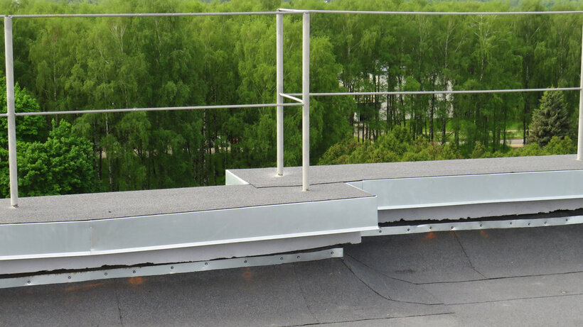 Также в ходе капремонта привели в порядок бортики крыши – их оштукатурили и покрасили. На всех парапетах рабочие сделали стяжку, уложили мастику и два слоя наплавляемой кровли. Скосы по периметру крыши обили жестью. Местами также переложили и укрепили вентиляционные вытяжные шахты.
