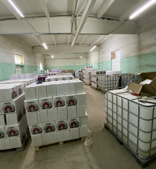 В ходе проверки складских помещений установлен факт производства и оборота спиртосодержащей продукции без лицензии, маркировки, фиксации в ЕГАИС и документов, удостоверяющих легальность производства и оборота.