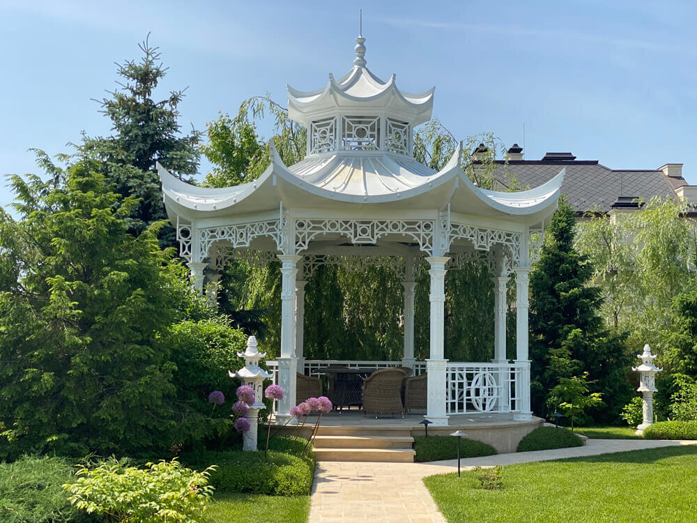 Как правило, владельцы загородной недвижимости стремятся облагородить не только сам дом, но и прилегающую к нему территорию. Лучший способ сделать это - создать на участке красивое и уютное место для отдыха. Именно поэтому кованые беседки не перестают пользоваться популярностью. Изящные металлические конструкции гармонично вписываются в любую концепцию ландшафтного дизайна, отлично сочетаются с зелеными клумбами и деревьями. В них приятно проводить время с семьей и друзьями, отдыхая от повседневной суеты на свежем воздухе. Преимущества кованых беседок Есть множество причин украсить придомовую территорию беседкой из кованого железа: Если вы мечтаете об уютном месте отдыха на своем участке, закажите кованую беседку в студии Ковка Арт Дизайн.