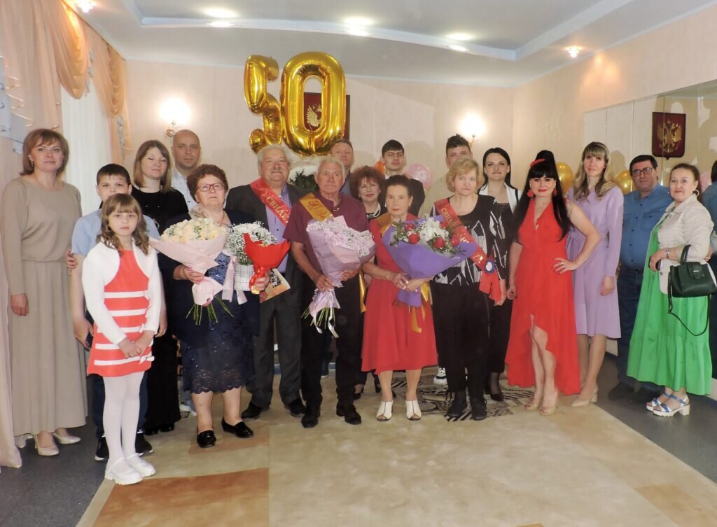 Вячеслав и Галина Самохины из поселка Ивот Дятьковского района Брянской области отметили золотую свадьбу. Вместе они прожили 50 лет. В торжественный день чета в роли жениха и невесты вновь пережили волнительное состояние полувековой давности. Родные и друзья, дети и внуки на украшенных по такому приятному случаю автомобилях приехали в ЗАГС. Галина Андреевна и Вячеслав Михайлович не только поставили свои подписи в Книге почетных юбиляров, но и обменялись золотыми кольцами. Присутствовавшие на торжестве гости дарили «золотым молодоженам» цветы. Прозвучало радостное «Горько!» и напутствие жить еще долго и счастливо. Супруги Самохины из брянского поселка Ивот торжественно отметили золоту свадьбу