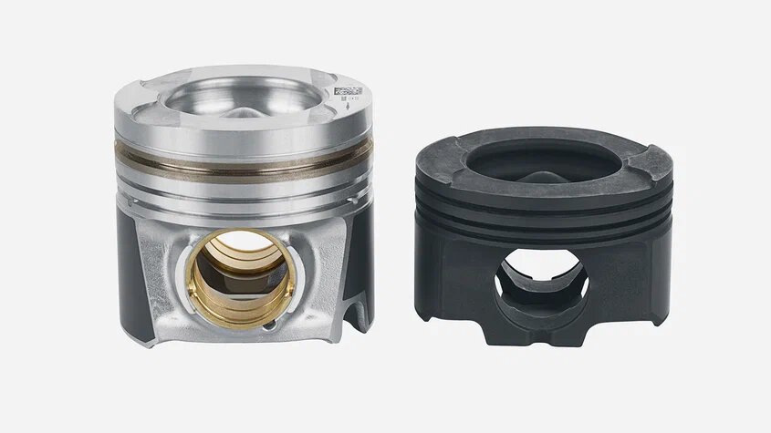 Традиционные двигатели внутреннего сгорания ещё называют поршневыми. В их корпусах (блоках) сделаны цилиндрические полости, или просто цилиндры. В каждом цилиндре работает свой поршень. Вспомним принцип работы ДВС. При сгорании топливо-воздушной смеси газы давят на поршень, и он начинает двигаться поступательно. С помощью шатуна и коленвала это поступательное движение превращается во вращательное, а потом передаётся через трансмиссию на колёса. Сам поршень, конечно, тоже имеет цилиндрическую (точнее, почти цилиндрическую) форму, чтобы плотно прилегать к поверхности цилиндра в двигателе. Фактически поршень (наряду с другими компонентами) предназначен для перевода энергии сгорания воздушно-топливной смеси в кинетическую энергию. Из чего состоит поршень Если внимательно посмотреть, как выглядит поршень ДВС, можно отметить две его важные составляющие: корпус поршня и уплотняющую часть. Корпус поршня, в свою очередь, состоит из днища и направляющей части. Днище поршня (или головка) — это