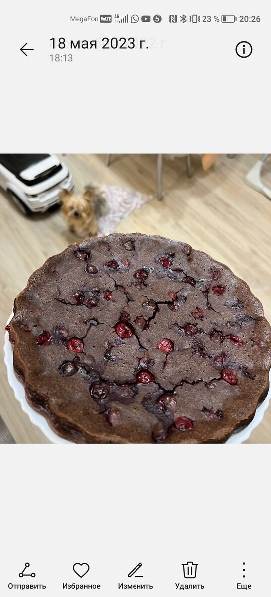 По просьбе моей подписчицы, делюсь рецептом ПП шоколадного пирога с вишней. Ингредиенты: Овсяные хлопья молотые 150 гр Кефир обезжиренный 200 мл 2 яйца Какао натуральный 20 гр Вишня 200 гр Стевия, разрыхлитель. Приготовление: Сделать тесто из овсянки, какао, кефира и яиц. В форму для выпекания выложить половину получившейся смеси, затем выложить на неё вишню. И сверху залить оставшимся тестом. Выпекать до готовности теста! Вот такая красота получилась Пирог получился вкусный и нежным👍 Всем приятного аппетита😋😋😋 Меню сегодня у меня было таким: Завтрак- моя любимая овсяная каша😘😘😘+кофе. Первый перекус - бутерброд с авокадо и рыбкой + кофе, яблоко. Обед - овощной борщ со сметаной. Второй перекус - ПП пирог с вишней + чай с лимоном🍋🍋🍋 Ужин - стейк с шампиньонами на гриле👍👍👍 Всё было очень вкусно. Воды выпито за день - 2 литра. Физической активности почти не было. Только домашние дела, готовка, уборка и поход в школу, сдавали учебники. Весь день в делах и заботах. Потом вре
