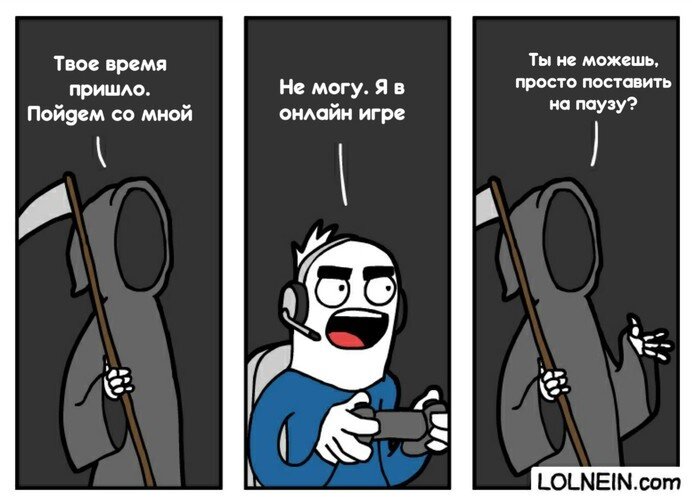 Привет, дорогой друг! У каждого из нас есть свое хобби. Причем многие из них связаны с виртуальным миром или гаджетами. Так как они являются неотъемлемой частью нашего современного мира. Поэтому, сегодня предлагаю погрузиться вместе со мной в онлайн-реальность и вместе с авторами комиксов, окунутся в увлекательную виртуальную вселенную игр. Вот, как выглядят культовые и значимые встречи для настоящего онлайн-геймера из комикса Lolnein. Тут даже сама судьба подождет. Что уж говорить о целом мире… В этой истории Грегора Чайковски, многие могут узнать себя. Согласитесь, так интересно играть в многопользовательские игры. Особенно, если отключить некоторые дополнительные опции) В этом комиксе от COOP.RUN, автор предлагает нам найти одно, но самое главное отличие между скучным соло и веселым кооперативом. А какой вариант предпочитаете вы? Март Виркус предлагает нам со стороны посмотреть на то, как выглядит большинство команд в кооперативных играх. А вы узнали себя? Играть вместе не всегда оч