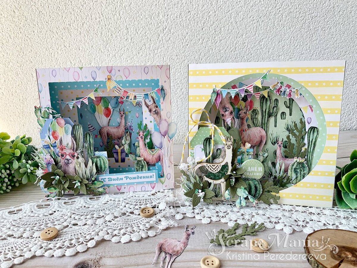 Мне посчастливилось работать с такой чудесной и красочной коллекцией "Ламы". Давайте представим, что мы находимся на мексиканском празднике и веселимся вовсю среди этих веселых, милых и очаровательных Лам🦙🌵 Веселая музыка, танцы, лимонады, флажки, фонарики и много другой праздничной атрибутики! Коллекция очень яркая, красочная, праздничная, поднимает настроение, можно бесконечно любоваться этими милыми и озорными Ламами🦙. Из нее можно сделать большое количество изделий, альбомы, открытки, magic box, все чего душа пожелает! Я же сделала вот такие туннель открытки в американском стиле, размером 15*15см .