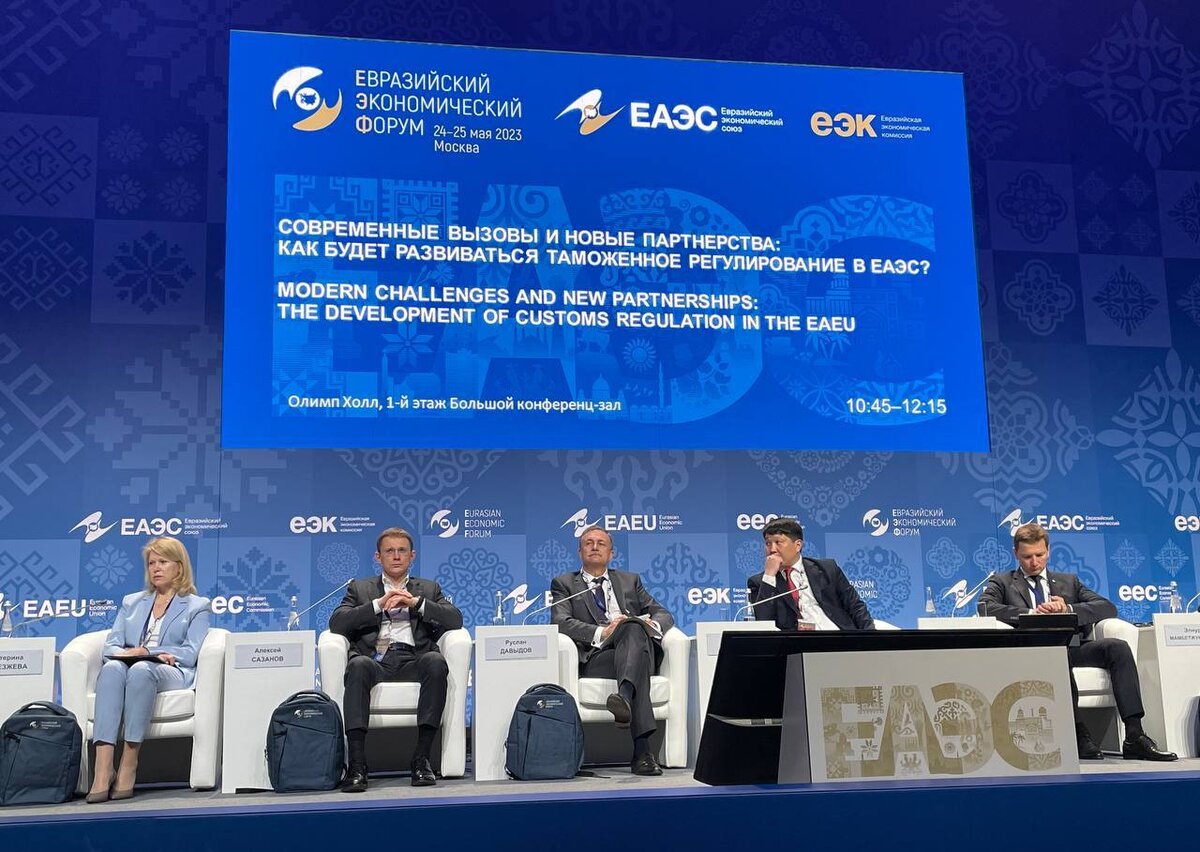 Врио руководителя ФТС России Руслан Давыдов выступил модератором сессии «Современные вызовы и новые партнерства. Как будет развиваться таможенное регулирование в ЕАЭС?», состоявшейся 24 мая в рамках Евразийского экономического форума. В фокусе внимания участников дискуссии – внедрение цифровых решений и информационных таможенных технологий с целью создания более комфортной среды для взаимодействия бизнеса, граждан и государственных органов, ускорение и упрощение трансграничной торговли, применение навигационных пломб в ЕАЭС. «Дальнейшее развитие ЕАЭС как одного из крупнейших мировых экономических союзов является ключевым фактором успешного развития не только стран-участниц, но и всего постсоветского пространства», – отметил Руслан Давыдов, подчеркнув, что суммарный эффект интеграционных связей ЕАЭС в период с 2011 по 2030 годы по некоторым оценкам составит около 650 млрд долларов США. Он сообщил, что сегодня на площадке Евразийской экономической комиссии ведется активная работа по подг