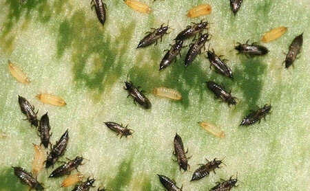 Как известно, у трипса есть две стадии, когда он не питается: яйца, отложенные самками на внутренней стороне листьев, а также личинки перед последней линькой. Каждая из этих стадий вылупляется и начинает питаться в течение 8 дней.