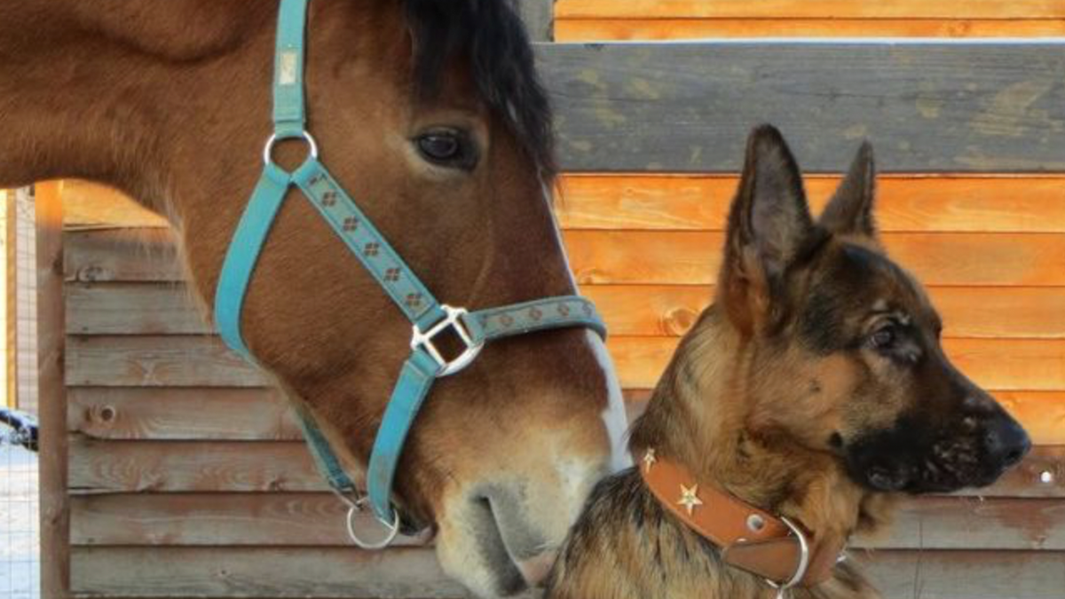 В одной американской деревне жила лошадь для скачек и щенок овчарки по имени Рекс. Щенок сам пришел в конюшню — хозяин лошади приютил малыша и начал обучать его охранять лошадей. В какой-то момент Рекс стал ходить только за одной лошадью, забыв об остальных. Со временем овчарка и лошадь стали неразлучными друзьями, ухаживая друг за другом и вместе развлекаясь Тогда хозяин принял непростое решение — разлучить животных, так как пес не справлялся со своими обязанностями. Однако после разлуки характер обоих животных существенно ухудшился, они явно скучали друг по другу. В конце концов хозяин решил привести овчарку к лошади, чтобы они снова увиделись. Видео с их первой встречи попало в интернет. Уже взрослый Рекс, узнав старого друга, вновь почувствовал себя щенком. Он подбежал к забору, за которым стояла лошадь, и радостно поприветствовал ее. Тогда владелец животных разрешил Рексу остаться жить на конюшне и проводить время со своим лучшим другом. Смотрите больше фото питомцев, которые под