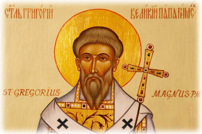 Папа Римский, великий просветитель западной церкви первого тысячелетия нашей эры, Григорий Двоеслов. Он жил еще в те времена, когда церковь не была разделена, а святые, жившие до разделения церкви, почитаются и в православии. Святитель Григорий родился в 540 году в Риме, в знатной христианской аристократической семье, некоторые члены которой тоже были канонизированы. До самого Григория, в его роду были два Папы Римских. Григорий получил очень хорошее образование, уже в 574 году он стал префектом Рима, но светская государственная деятельность его не очень интересовала. После смерти отца Григорий раздает все имущество, тратит все деньги на монастыри, строит обители и богадельни. Потом он принимает монашеский постриг в одном из монастырей - из тех, которые сам и основал. Вскоре его посылают в Константинополь с дипломатической миссией, к тому времени Григорий был уже в сане диакона. Через несколько лет он возвращается и избирается на место умершего Папы. Служение Григория на посту Папы Рим