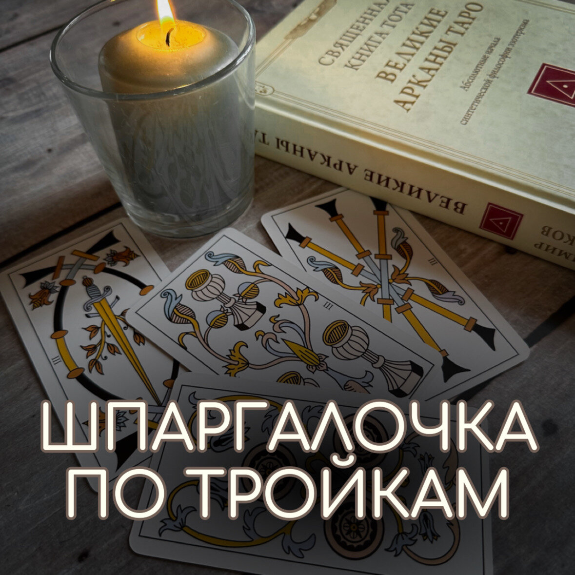 Наконец-то нашла время продолжить писать для вас шпаргалочки, чтобы и вы могли не запоминать все значения Арканов, а быстро их вычислять. Итак, с Тузами и Двойками мы разобрались, и на очереди Троечки. Я их нежно люблю. За яркий характер и головоломные смысловые оттенки. Еще бы: Двойки равновесны, но даже им сложно с их бинарностями. На самом деле, противоречие зарождается еще в них по факту появления дуальности, но именно Тройки разворачивают конфликт. И хорошо, если появление «третьего» будет тем самым синтезом (помните - тезис, антитезис?), но так, к сожалению, бывает не всегда. С другой стороны, Тройки - Арканы роста и развития. Как и в предыдущих случаях, вычисляя значение каждой Тройки, мы будем опираться на 2 основных фактора: нумерологический смысл и принадлежность Масти (Стихии). В нумерологии 3 - одно из самых сакральных чисел. Графически 3 изображается как треугольник, символ Божественного в различных религиях. И не стоит забывать о том, что перевернутый треугольник м