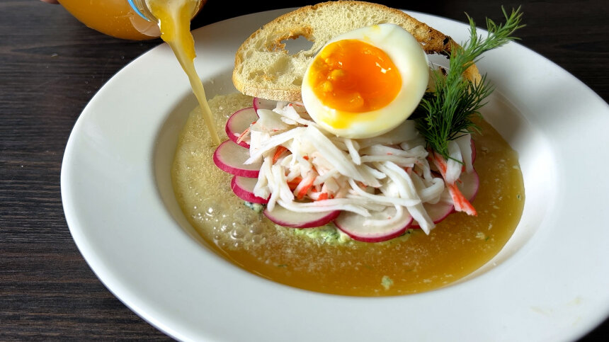 По одной из легенд, окрошку придумали волжские бурлаки. С годами рецепт претерпел серьезные изменения. Фото: 5-tv.ru В России 30 мая празднуется День окрошки. Окрошка — настоящее спасение для гурманов в летний зной, когда многие блюда кажутся слишком тяжелыми. Этот холодный суп прекрасно освежает в жару и утоляет голод. Сегодня чаще всего это блюдо готовят по рецепту на кефире, однако в старину предки ели окрошку исключительно на квасе, огуречном или капустном рассоле. Последний вариант очень полезен для здоровья, поскольку нормализует работу сердца и желудка, а также уничтожает патогенную микрофлору. Как приготовить полезную и вкусную окрошку на домашнем квасе, Пятому каналу эксклюзивно рассказал шеф-повар Дмитрий Ознобишин.