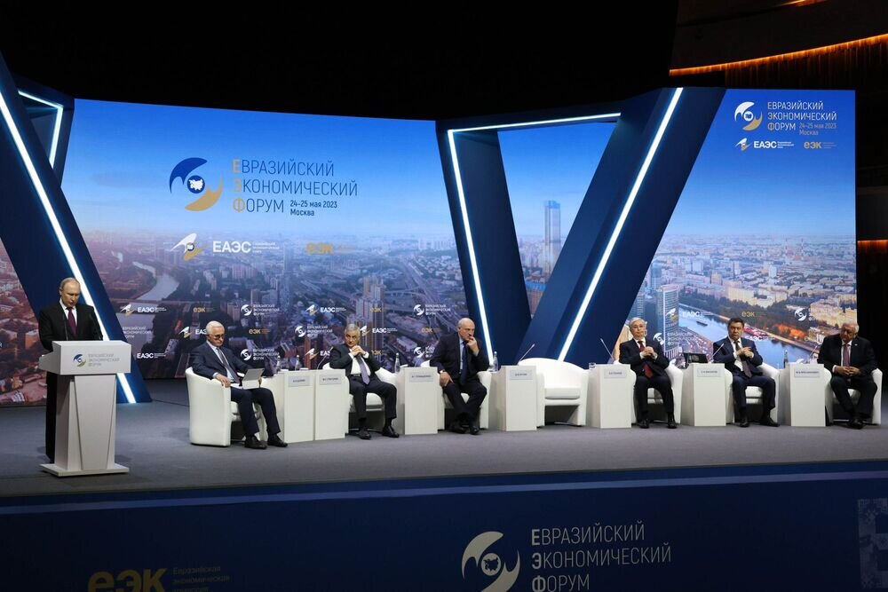 Первый день II Евразийского экономического форума, открывшегося в Москве 24 мая, в целом продемонстрировал настроенность всех его участников на формирование конкретных коллективных ответов на современные геополитические вызовы. Соответственно, тональность именно такому характеру работы ЕЭФ-23 была обозначена в выступлениях президента России Владимира Путина, президента Белоруссии Александра Лукашенко, президента Казахстана Касым-Жомарта Токаева.