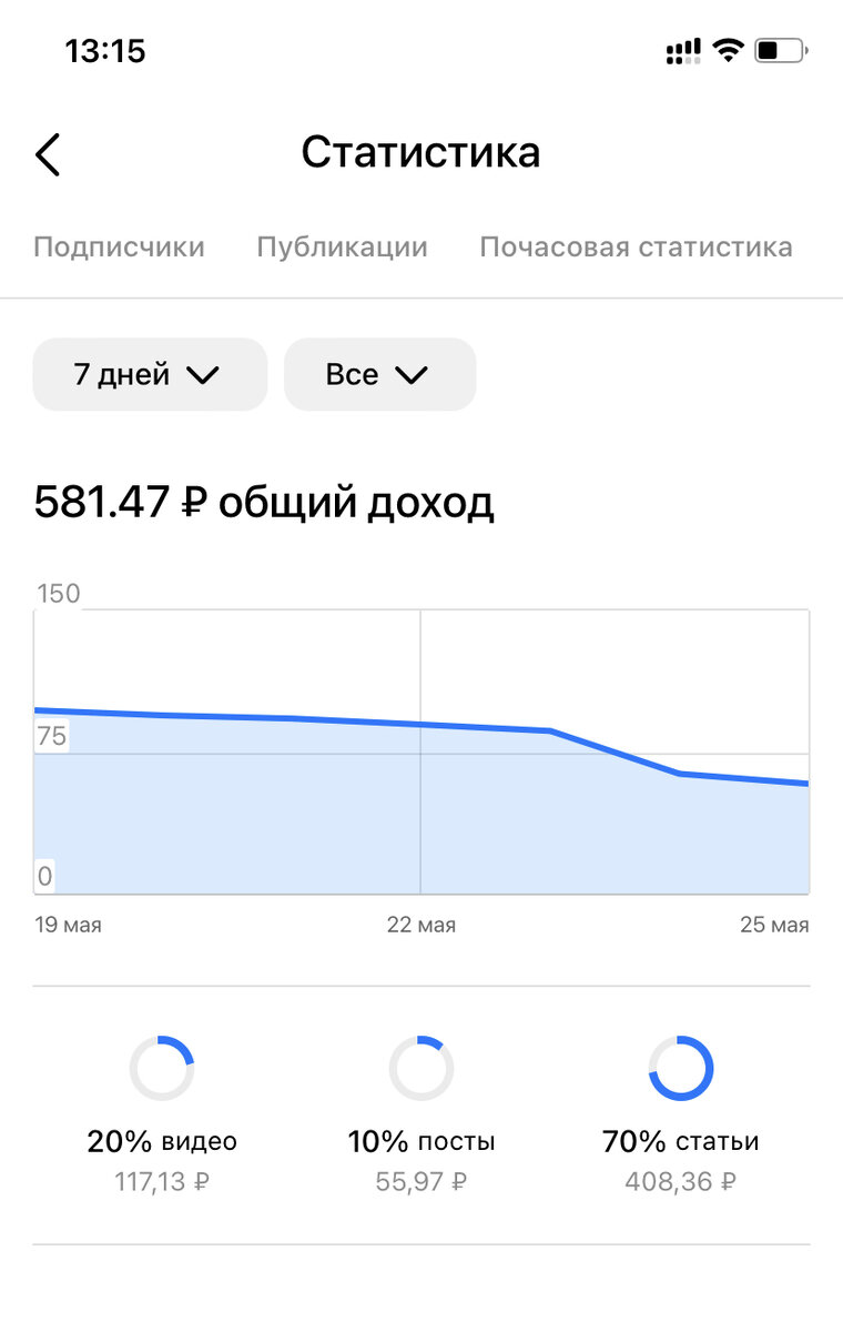 Доброго всем дня . Захотелось мне написать , выговориться и тд пол доход на дзен ) Начала я тут радоваться , что пошел доход вверх . Приходило 80-99₽ в день . Думала перешагну плану 100₽ и будет она расти . Но не тут то было . Последние 3 дня доход стремительно у меня пошел вниз и упал почти на 50₽ . Очень печалит этот момент я вам скажу Я думаю на скрине видно как планочка падает вниз . Не могу понять с чем связано это все . Подписчиков пришло много за эту неделю . Активность от них я вижу , сама активничаю . В сутки стараюсь зайти к каждому . Если вдруг кому то забываю или времени не хватает то уже за два дня я точно забегаю . Смотрю то что нужно и по долгу (1 минута минимум ) И вот я и думаю 🤔 Пришло много народу , доход должен был пойти вверх . Так как пришли они через эксперимент . Взаимно поддерживаем . А получилось совсем наоборот . Пришли а доход вниз . И складывается впечатление что кто -то халтурит . Ну это на их совести . Я буду продолжать дальше Надеюсь скоро я см